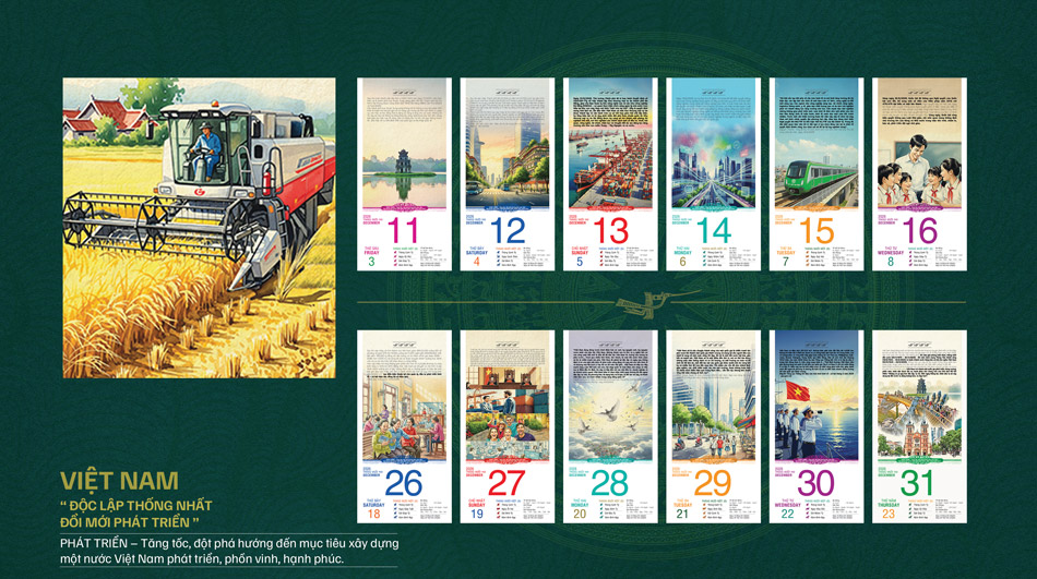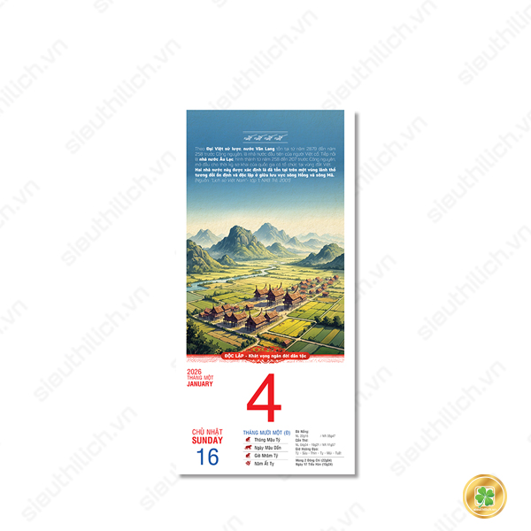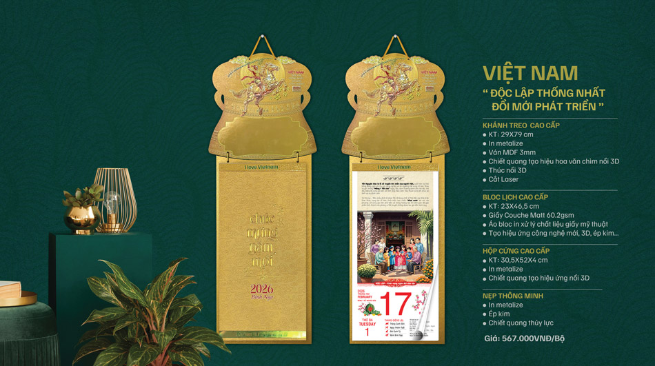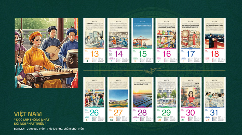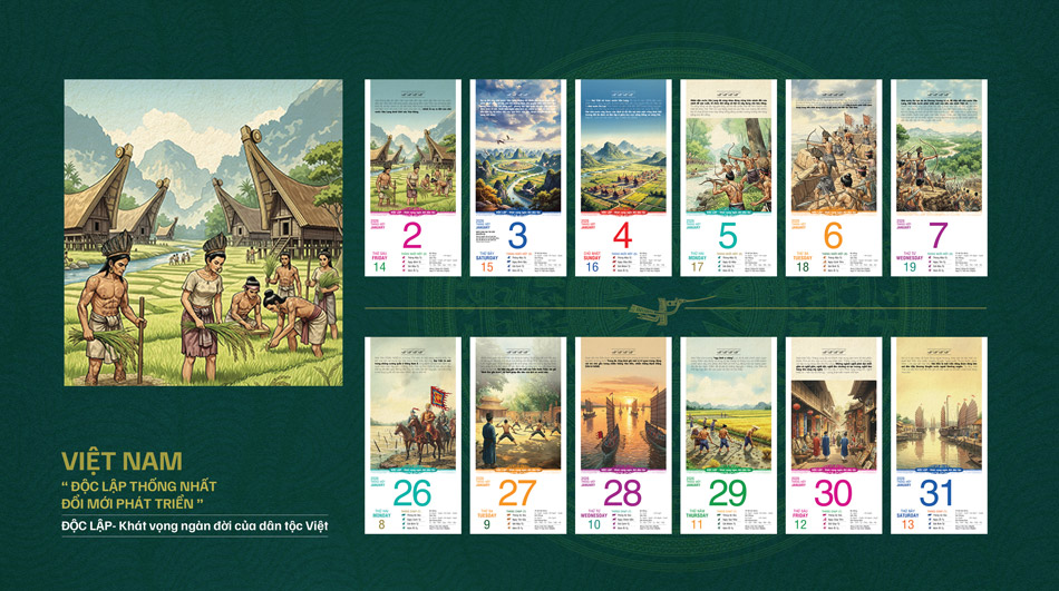 Bộ lịch Bloc 365 ngày năm 2026 với chủ đề "VIỆT NAM: Độc lập – Thống nhất – Đổi mới – Phát triển" là một hành trình thị giác và cảm xúc, tái hiện dòng chảy lịch sử hàng ngàn năm của dân tộc Việt Nam – từ buổi đầu dựng nước cho đến thời kỳ phát triển hiện đại hôm nay.
